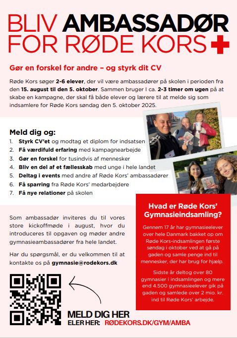 Her finder du diverse SoMe-grafikker, som kan bruges til jeres sociale medier evt, med tekst. Grafikkerne består at Gymnasieindsamlingens logo og tre forskellige grafikker med ambassadør-opfordring.